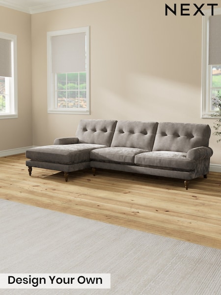Distressed Velour/French Grey Erin Buttoned Back Deep Relaxed Sit