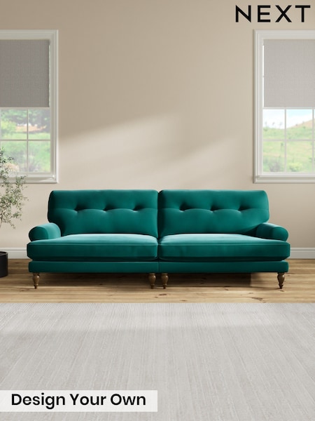 Plush Velvet Easy Clean/Juniper Green Erin Buttoned Back Deep Relaxed Sit