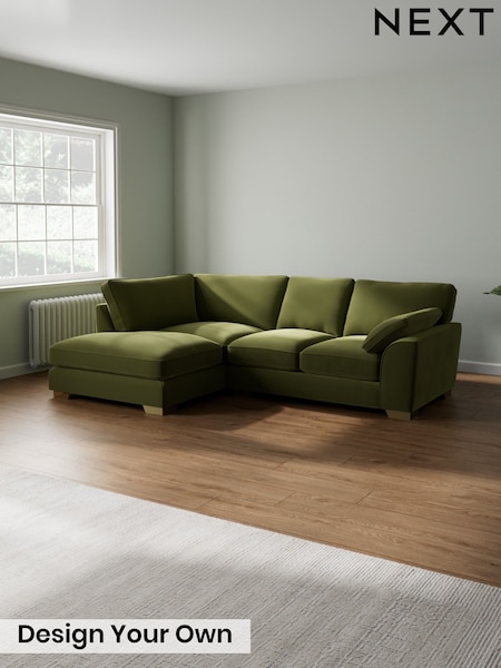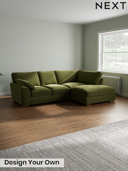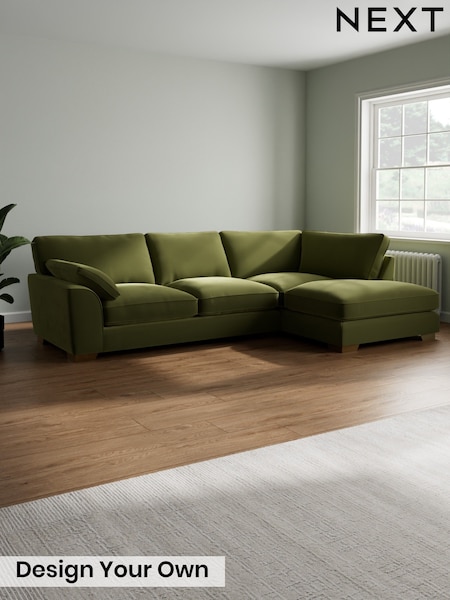 Plush Velvet Easy Clean/Mid Olive Green Stamford Grand Relaxed Sit