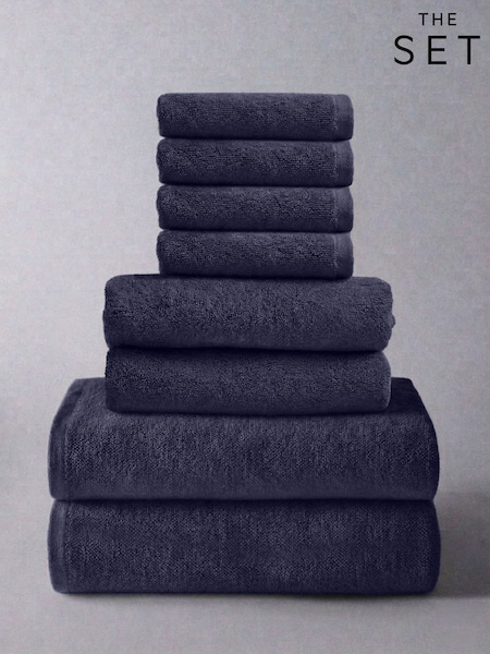The Set 8 Pack Navy Blue Popcorn Textured Towel Bale