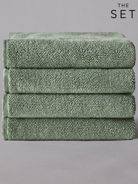 The Set Set of 4 Sage Green Popcorn Textured Bath Towels