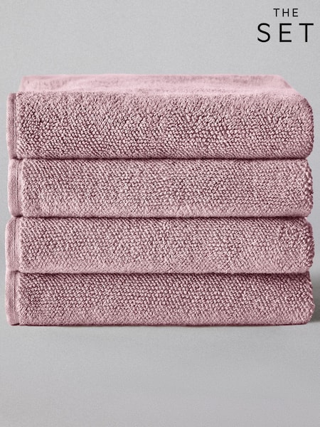 The Set Set of 4 Pink Popcorn Textured Bath Towels