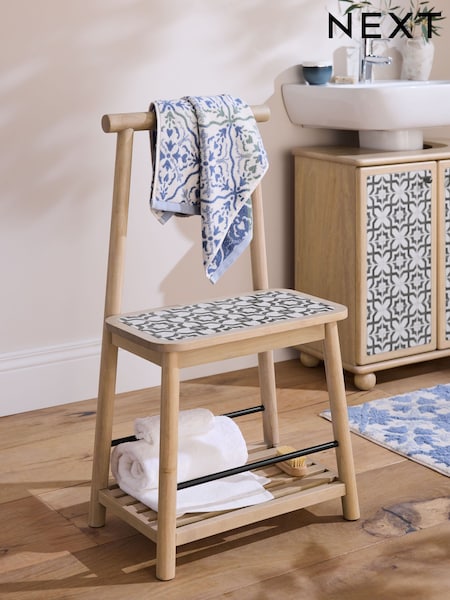 Black/White Monochrome Geo Print Towel Rail Storage Stool