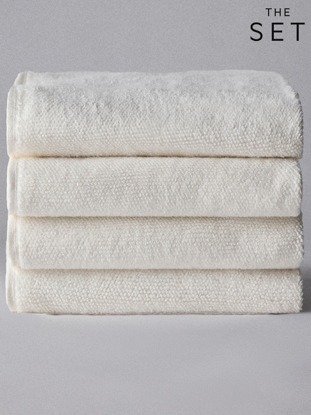The Set Set of 4 White Popcorn Textured Bath Towels