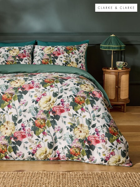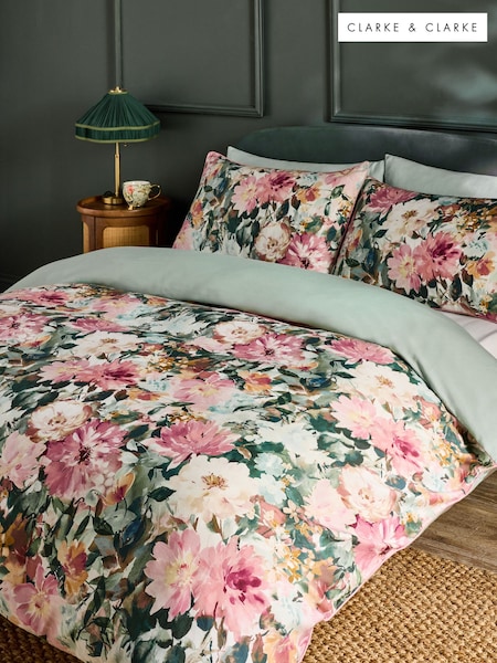 Clarke and Clarke Green Bloom Spring 200 Thread Count Duvet Cover and Pillowcase Set