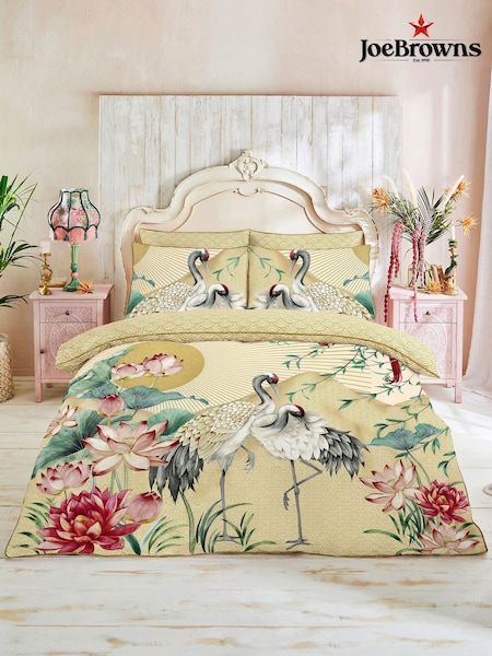Joe Browns Cream Elegant Cranes Cotton Sateen Reversible Duvet Cover and Pillowcase Set