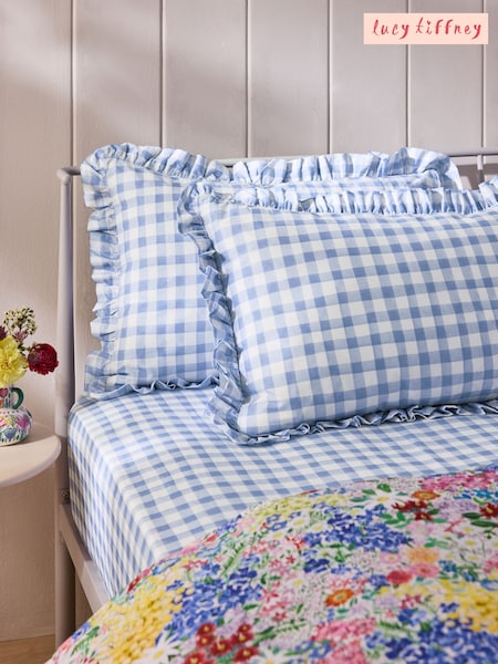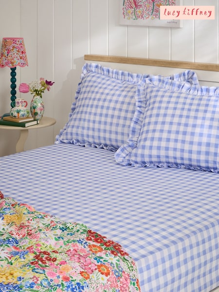 Lucy Tiffney Lilac Gingham 180 Thread Count Fitted Sheet