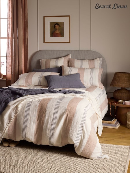 Secret Linen Store Vintage Rose Sid Stripe 100% Linen Pillowcase