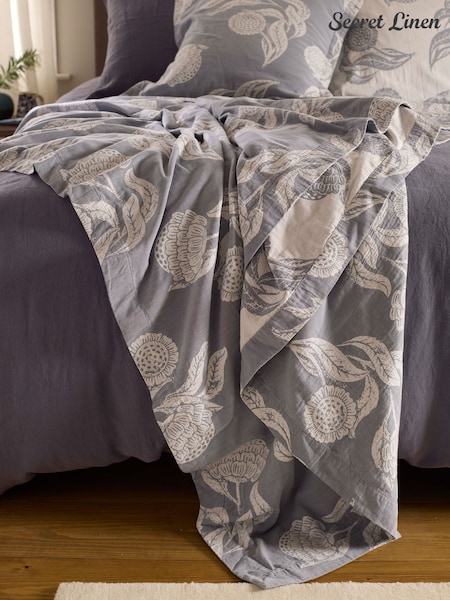 Secret Linen Store French Blue Finn 100% Quilted Throw