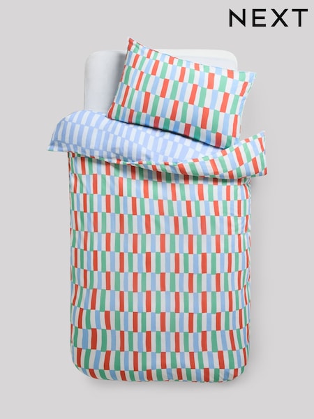 Blue/Red Bright Stripe Cotton Printed Bedding Duvet Cover and Pillowcase Set