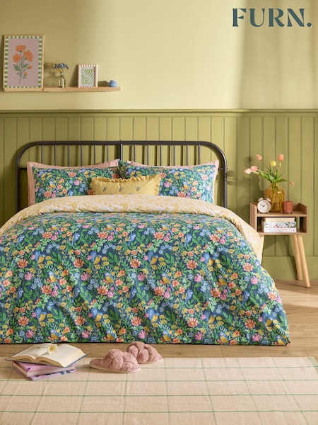 Furn Navy Emerie Duvet Cover and Pillowcase Set