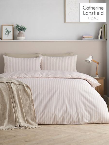 Catherine Lansfield Natural Epping Textured Stripe Reversible Duvet Cover and Pillowcase Set