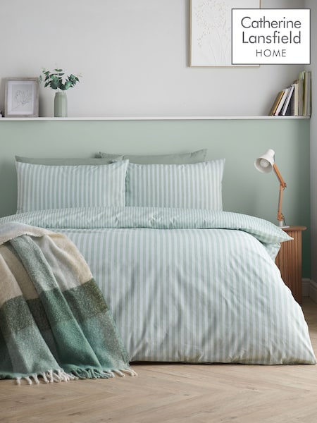 Catherine Lansfield Green Epping Textured Stripe Reversible Duvet Cover and Pillowcase Set
