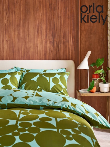 Orla Kiely Set of 2 Aqua Seagrass Blue Bubble Flower 200 Thread Count Pillowcases