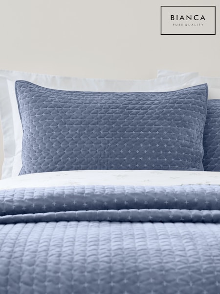 Bianca Blue Attica Velvet Embroidered Pillowsham Pair