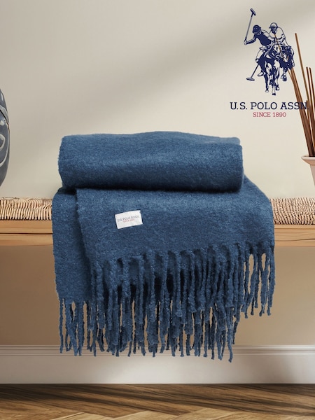 Us Polo Assn Navy Iris Premium Super Soft Hanging Throw