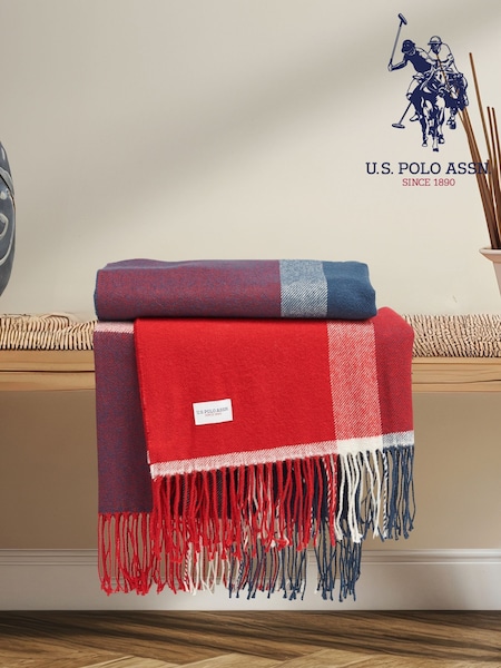 Us Polo Assn Navy Iris Luxurious Soft Check Boxed Throw