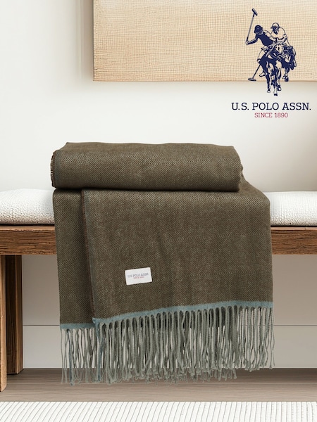 Us Polo Assn Desert Palm Luxurious Herringbone Boxed Throw