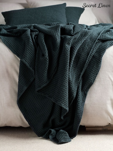 Secret Linen Store Darkest Spruce Big Waffle 100% Cotton Throw