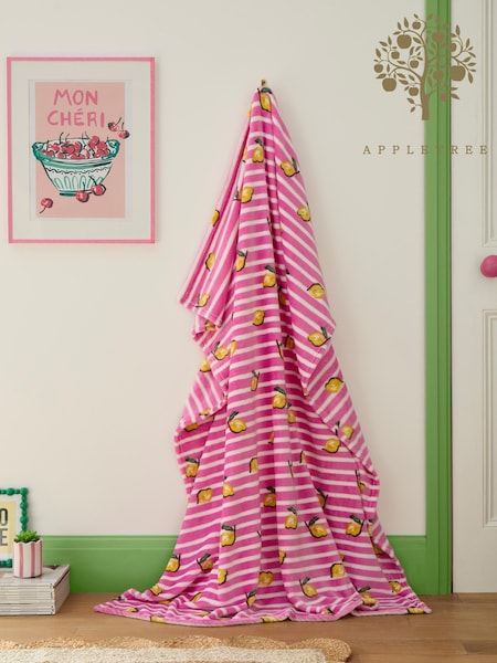 Appletree Pink Summer Fruits Fleece Throw