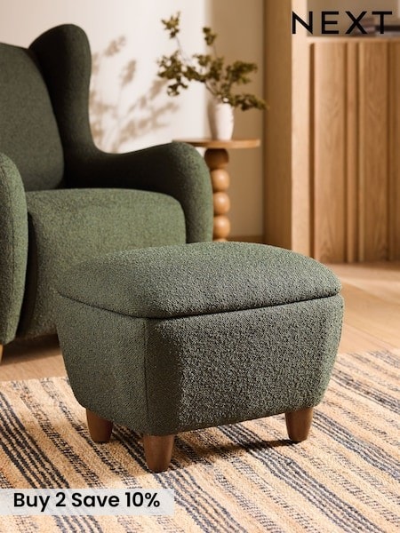 Casual Boucle Olive Green Arches Storage Footstool