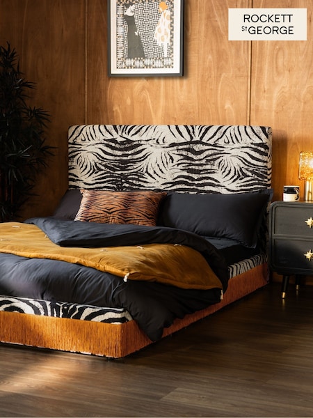 Rockett St George Zebra Woven Black & Cream Tassel Bed