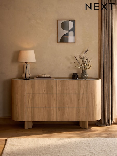 Light Natural Nomad Curve 6 Drawer Wide Chest of Drawers