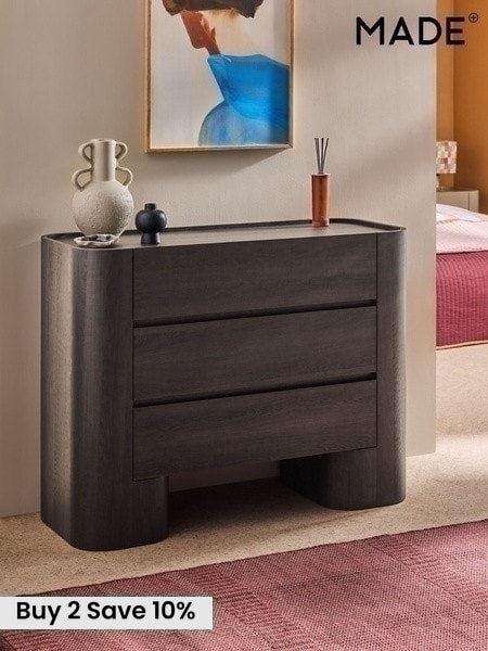 MADE.COM Dark Wood Effect 3 Drawer Kain Wide Chest