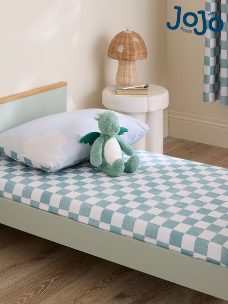 Jojo Maman Bébé Blue Checkerboard 180 Thread Count Fitted Sheet