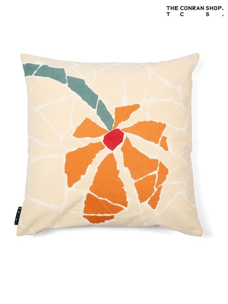 The Conran Shop Cream Orange Pieces Broken Stem Diptych Flower Cushion 50x50cm