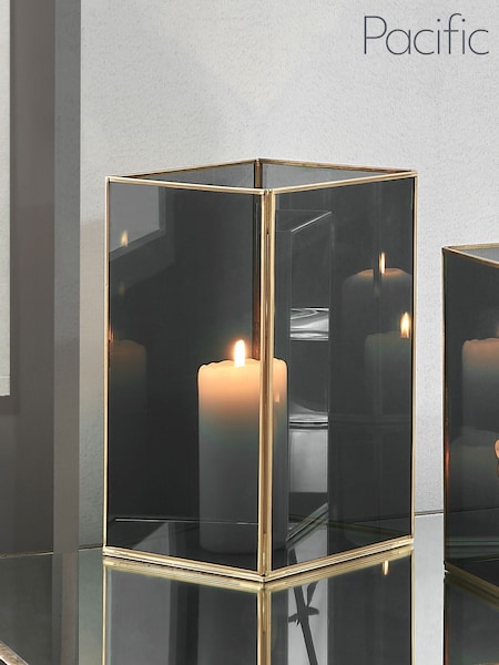 Pacific Lifestyle Brass Glass Panelled Square Candle Holder