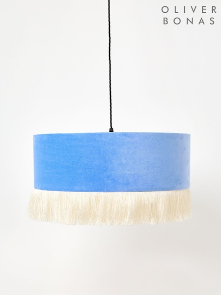 Oliver Bonas Blue Ero Velvet Tassel Pendant Lamp Shade