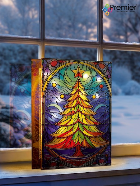 Premier Decorations Ltd 21 x 28cm BO Lit Stained Glass Tree For Table Top