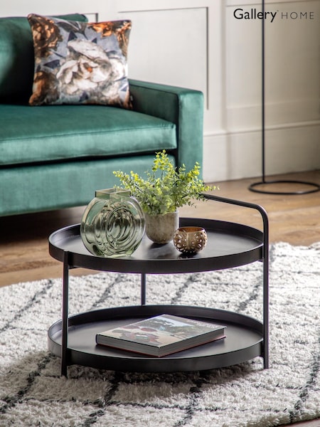 Libra Interiors Black Monochrome Swirl Round Coffee Tray Table