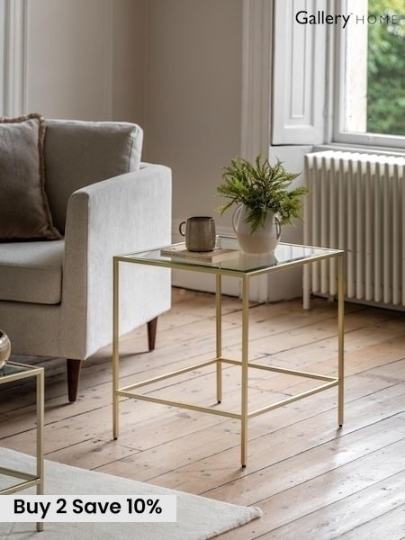 Julian Bowen Gold Cross Frame Square Side Table with Glass Shelf