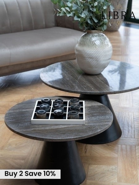Libra Interiors Grey Clifton II Charcoal Black and Dark Travertine Coffee Table