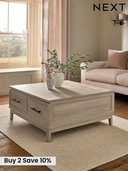 MADE.COM Oak Effect Pavia Rattan Coffee Table to Desk