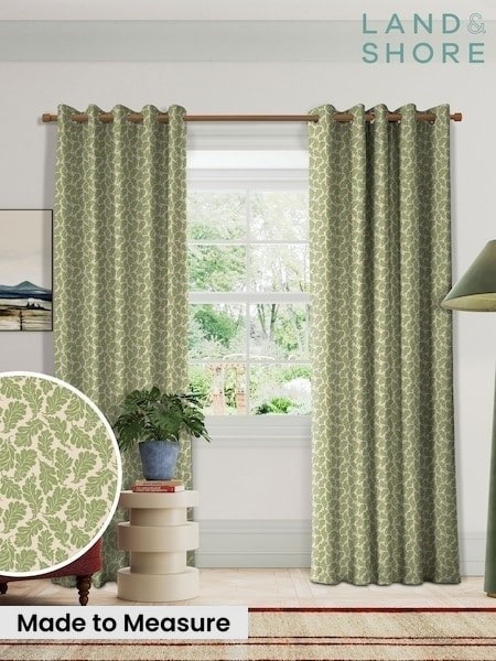 Land & Shore Green Oak Leaf Made to Measure Curtains