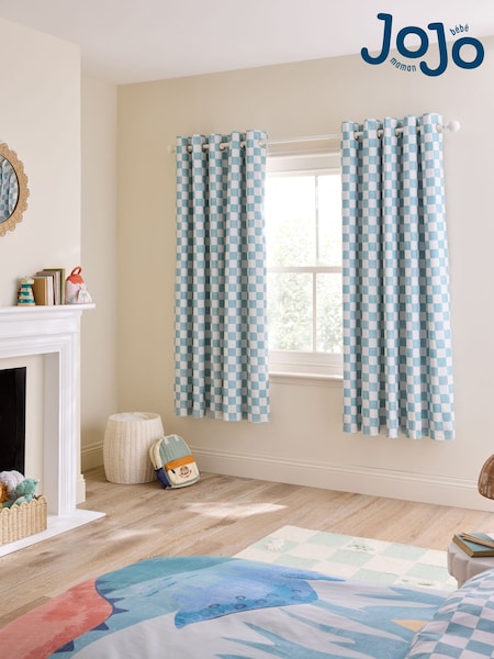 Jojo Maman Bébé Teal Blue Checkerboard Blackout Lined Curtains