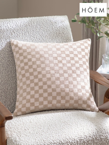 HÖEM Natural Larro Chenille Checkerboard Fibre Filled Cushion