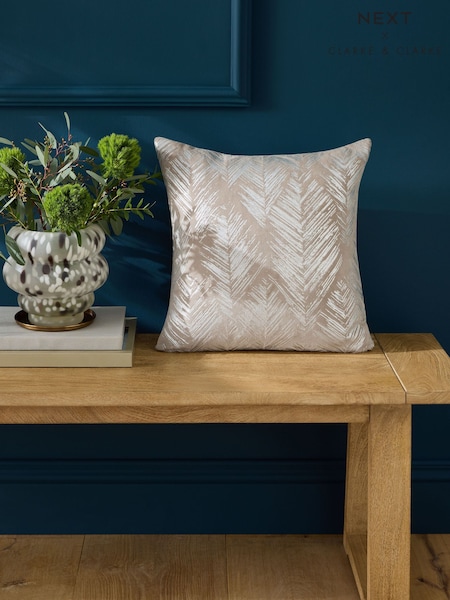 Clarke and Clarke Natural Folius Leaf Foil Velvet Cushion