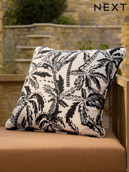 Black/White 50 x 50cm Indoor Outdoor Jacquard Palm Tree Cushion