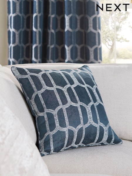 Teal Blue 50 x 50cm Jacquard Fan Geo Cushion