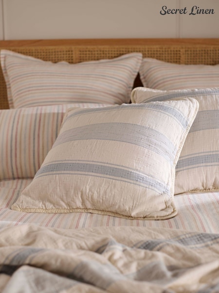 Secret Linen Store Blue Benji Stripe Quilted Cushion Cover