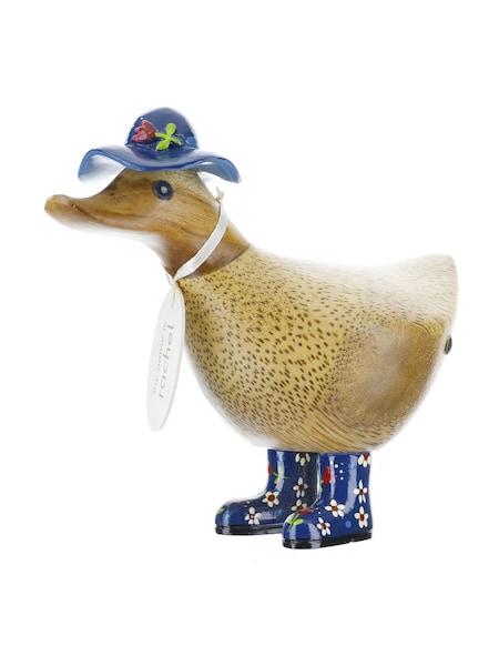 DCUK Blue Floral Hat and Boots Ducky Wooden Ornament