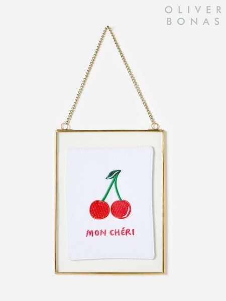 Oliver Bonas Gold Mon Cheri Embroidered Wall Art