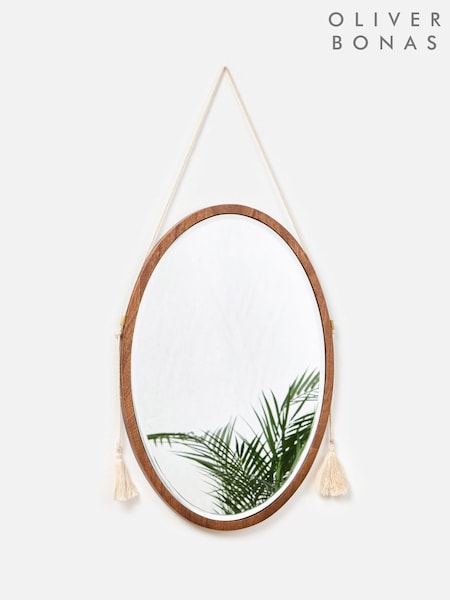 Oliver Bonas Brown Wooden Oval Tassel Wall Mirror