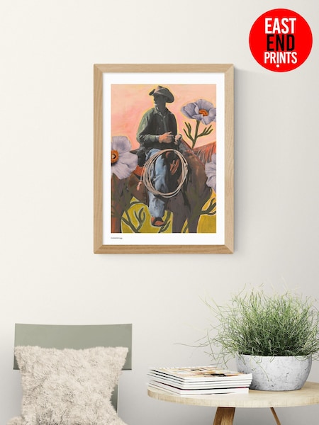 East End Prints Oak Retro Rodeo Cowboy Wall Art Print by El Baker