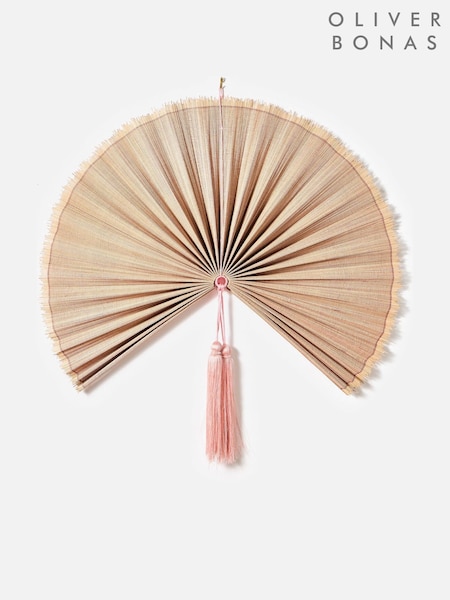 Oliver Bonas Pink Bamboo Fan Tassel Hanging Wall Decor