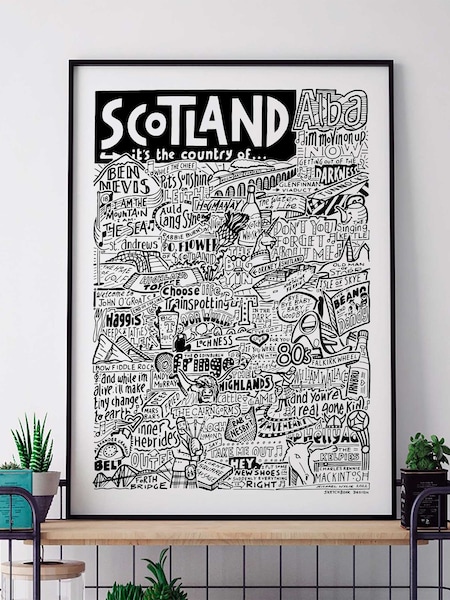 Sketchbook Design Multi Scotland Landmarks Illustration Framed Wall Art Print